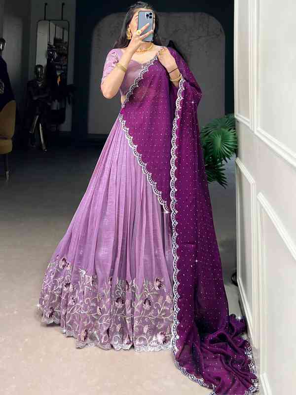The highlight of this set is its ready-to-wear fully stitched blouse, decorated with heavy work, dazzling mirror detailing, and stylish tassels on the sleeves for a premium designer look. Perfect for weddings, receptions, and festive occasions, this lehenga choli is a must-have to make your moments truly memorable.
