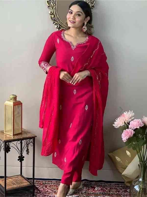 Featuring detailed embroidery, a matching bottom, and a stylish dupatta, this 3-piece kurti set is perfect for festivals, weddings, parties, and daily wear.